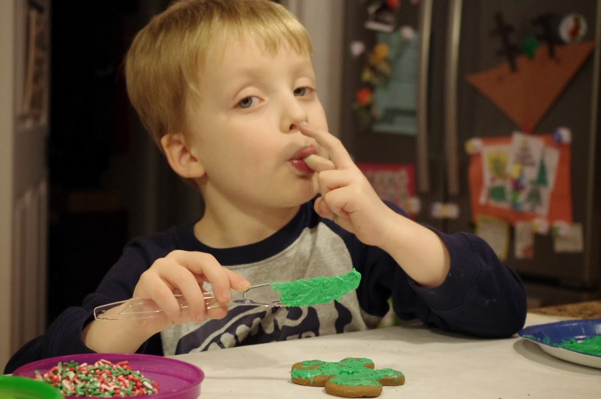 We made gingerbread cookies. The process lasted about 2 days. We made the batter Monday morning and then rolled out the dough and baked on that evening and on Christmas Eve we decorated the cookies and ate them.